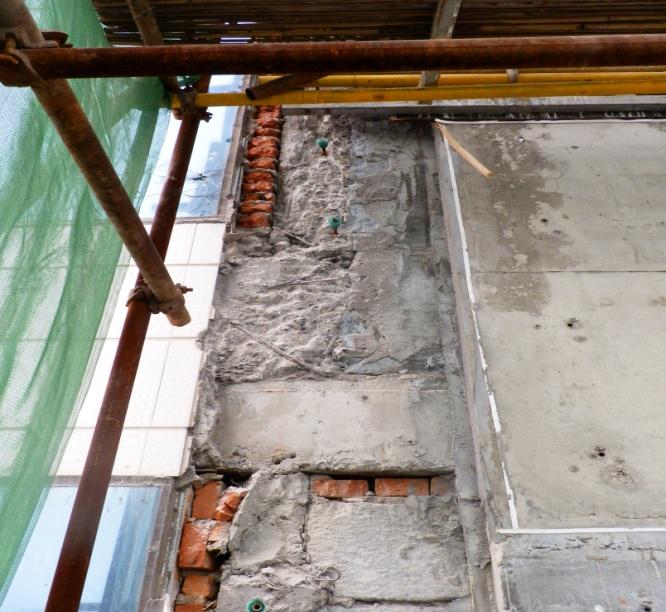2、剪力墙内墙的结构构件材料损伤的处理,这是一个动态设计动态施工的过程,需先剔除建筑装饰面层做法后,现场确定损伤类型,即锈胀区以及局部损伤部位划分的不同,选择对应的处理方法。