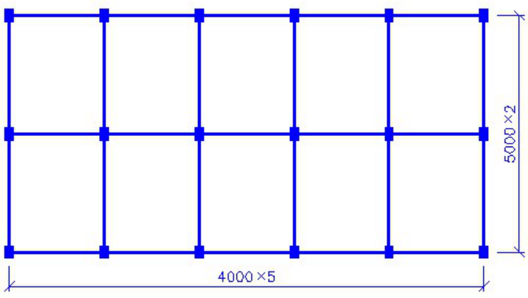 6层混凝土框架结构平面布置如下图所示,层高3000,柱截面尺寸400×500,梁尺寸350×500,板厚200,材料:混凝土C20,钢筋II级,地震设计第一组,Ⅲ类场地,抗震设防8度,加速度0.2g,楼面恒载2.0kN/m2,不包括自重,楼面活载2.0kN/m2。