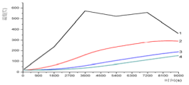 用FDS进行火灾模拟,既可方便地获得火灾空间不同时刻的温度分布,也可方便获取空间某点的火灾温度过程。通过切片提取,还可方便显示某平面或立面的温度分布及温度全过程。其中火灾荷载最大,热释放速率、平均温度和局部温度均较高的某位置处的温度过程如下图1 所示,通过分段线性处理得到拟合曲线(图中虚线所示),作为后续框架结构内部温度场分析相应构件环境升温曲线。