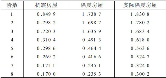 表3 抗震房屋和隔震房屋的自振周期/s