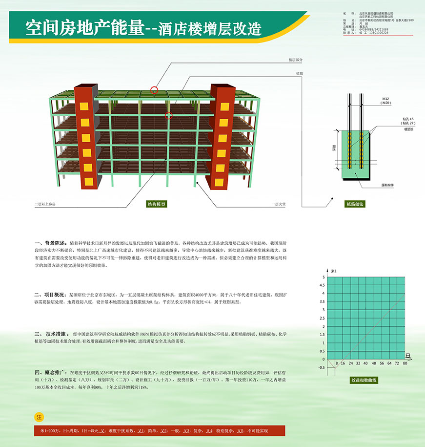 四、概念推广:在难度干扰细数又3和时间干扰系数80日情况下,经过仔细研究和论证,最终得出启动项目历经阶段及费用如:评估咨询(十万)、检测鉴定(八万)、规划审批(二万)、设计施工(九十万),投资回报(一百万/年)。第一年投资110万,一年之内增益100万基本全收回成本,每年净利90%,十年之后净增利润718%。