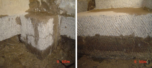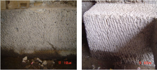 遵照设计院要求,在中国矿业大学检测的基础上,我公司对基础桩承台的配筋和裂缝深度及形成时间进行了检测。