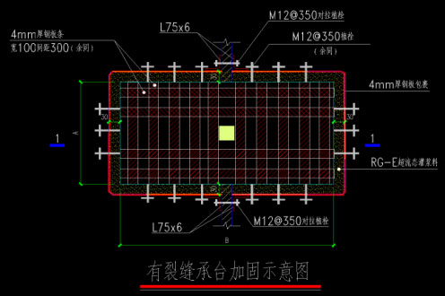 2、对无裂缝基础桩承台也需进行加固处理(具体方案另详)。