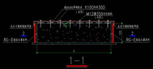 故本方案采用外包钢板的方式对承台进行约束加固,并在钢板与混凝土之间填充灌浆料,利用其微膨胀性使得钢板与混凝土之间能紧密结合,协同工作。