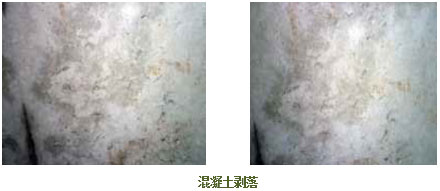 2) 根据混凝土强度检测报告,除了框架柱外,部分剪力墙、框架梁及楼板的混凝土也存在强度过低、混凝土不成形及冻害现象。